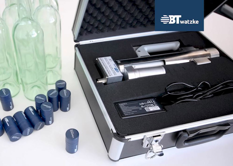 La tappatrice manuale elettrica per bottiglie con collo BVS (chiusure VINOTWIST Premium BVS 30x60 con la filettatura interna) è una soluzione compatta e facile da usare per vignaioli, imbottigliatori e fattorie che producano quantità piccole oppure che vogliano chiudere bottiglie di prova con una chiusura BVS-Premium alluminio.